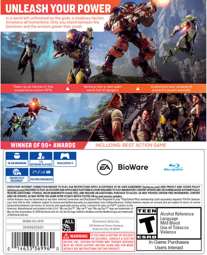 On a world left unfinished by the gods, a shadowy faction threatens all of humankind. The only thing that stands between these villains and the ancient technology they covet are the Freelancers. Join with up to three other players and assemble high-tech, hand-crafted, uniquely powerful exosuits. Explore vast ruins, battle deadly enemies, and claim otherworldly artifacts. With every mission, you and your Javelin exosuit grow in power. Fight the dangers of an ever-changing world. Rise united to defeat evil. Triumph as one. Anthem invites you to experience a co-operative Action-RPG set in a new and mysterious world from BioWare and EA.