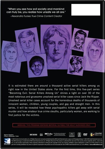 It is estimated there are around a thousand active serial killers among us right now in the United States alone. For the first time the five-part series Becoming Evil: Serial Killers Among Us shines a light on over 30 of the most notorious and gruesome unsolved serial killer cases since Jack the Ripper how amateur true crime sleuths are working to find justice for the victims.