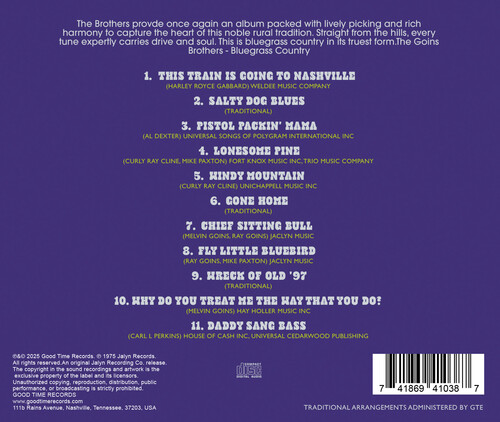 The Brothers provde once again an album packed with lively picking and rich harmony to capture the heart of this noble rural tradition. Straight from the hills, every tune expertly carries drive and soul. This is bluegrass country in it's truest form.