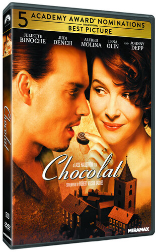 Bittersweet tale from director Lasse Hallström is set in a small French village in 1959, where single mother Josephine (Juliette Binoche) arrives with her daughter and opens a chocolate shop whose confections have an intoxicating and liberating effect on the townspeople, until the iron-willed mayor tries to shut her down. With Judi Dench, Alfred Molina, Lena Olin, Carrie-Anne Moss, and Johnny Depp as an Irish river Gypsy seduced by Josephine's sweet spell. 121 min. Widescreen; Soundtrack: English Dolby Digital 5.1; Subtitles: English (SDH), Spanish; additional scenes; audio commentary; featurette; games.