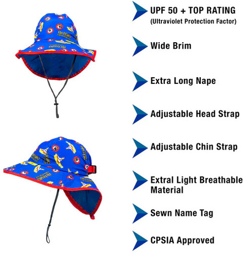 Crafted from 100% Polyester, this hat is extra lightweight, breathable, and wrinkle free. It offers maximum coverage and protection with features such as a wide brim floppy design, adjustable chin and head straps, and an ultraviolet protection (UPF) factor of 50+.