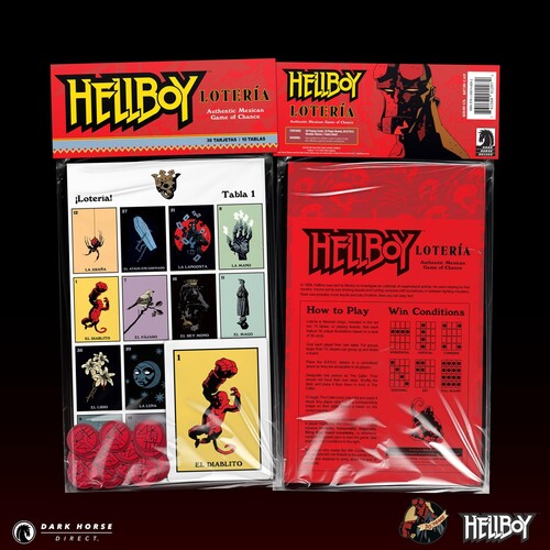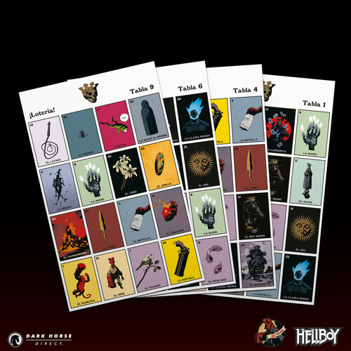 Celebrate your love of Hellboy with your friends, or fellow B.P.R.D. members, with this all-new, exclusive Hellboy Lotería Card Game! Lotería is a traditional Mexican game of chance and, on account of Dark Horse Direct and Mike Mignola, you can now test your luck with the Hellboy-inspired version of this timeless game!