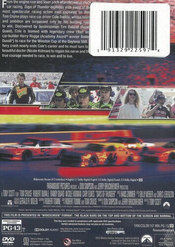 Newly remastered from a 4K film transfer supervised by producer Jerry Bruckheimer, Days Of Thunder explodes with the most spectacular racing action ever captured. Tom Cruise plays race driver Cole Trickle, whose talent and ambition are surpassed only by his burning need to win. Discovered by businessman Tim Daland (Randy Quaid), Cole is teamed with legendary crew chief and car-builder Harry Hogge (Academy Award winner Robert Duvall) to race for the Winston Cup at the Daytona 500. After a fiery crash nearly ends Cole's career, he turns to a beautiful doctor (Nicole Kidman) to regain his nerve and the true courage needed to live at the speed of life.