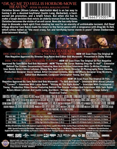 - Pardon My Curse: Making Drag Me to Hell—Extensive Behind-the-Scenes Documentary Featuring New and Archival Interviews with Co-Writer/Producer Ivan Raimi, Actors Alison Lohman, Dileep Rao and Lorna Raver, Director Of Photography Peter Deming, Production De