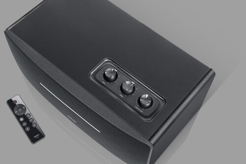 - Remote control and top-mounted knobs