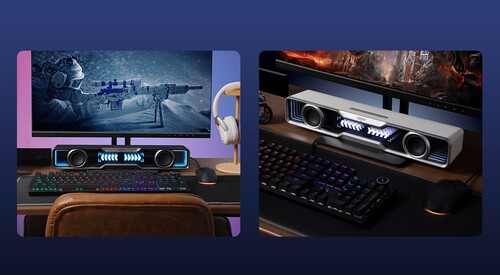 Well-designed Acoustic Architecture - The acoustic architecture features two independent cavities. Dual 2" full-range drivers deliver a total output power of 5W (RMS). Two symmetric bass reflex channels enhance bass for dynamic rhythms. Silicone foot-pads slightly uptilt the baffle, directing sound waves to ear level when the speaker is placed under your computer screen.
