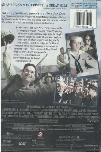 From Academy Award-winning director Clint Eastwood ("Million Dollar Baby," "Unforgiven") comes the World Was II epic "Flags of Our Fathers," produced by Eastwood, Academy Award winner Steven Spielberg ("Saving Private Ryan," "Schindler's List"), and Rob Lorenz ("Mystic River"). February 1945. Even as victory in Europe was finally within reach, the war in the Pacific raged on. One of the most crucial and bloodiest battles of the war was the struggle for the island of Iwo Jima, which culminated with what would become one of the most iconic images in history: five Marines and a Navy corpsman raising the American flag on Mount Suribachi. The inspiring photo capturing that moment became a symbol of victory to a nation that had grown weary of war and made instant heroes of the six American soldiers at the base of the flag, some of whom would die soon after, never knowing that they had been immortalized. But the surviving flag raisers had no interest in being held up as symbols and did not consider themselves heroes; they wanted only to stay on the front with their brothers in arms who were fighting and dying without fanfare or glory. 'Flags of Our Fathers' is based on the bestselling book by James Bradley with Ron Powers, which chronicled the battle of Iwo Jima and the fates of the flag raisers and some of their brothers in Easy Company. Bradley's father, John "Doc" Bradley, was one of the soldiers pictured raising the flag, although James never knew the full extent of his father's experiences until after the elder Bradley's death in 1994. The ensemble cast of "Flags of Our Fathers" includes Ryan Phillippe ("Crash"), Jesse Bradford ("Happy Endings"), Adam Beach ("Windtalkers"), Paul Walker ("Into the Blue"), Jamie Bell ("Billy Elliot"), Barry Pepper ("Saving Private Ryan") and John Benjamin Hickey ("Flightplan"). Clint Eastwood directed "Flags of Our Fathers" from a screenplay adapted by William Broyles, Jr. ("Cast Away") and Oscar winner Paul Haggis ("Million Dollar Baby," "Crash").