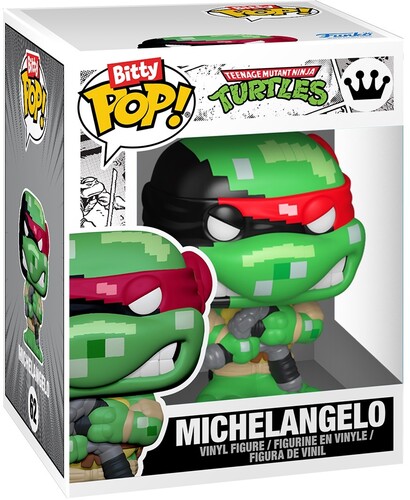 The world of POP! is getting bigger—and smaller—with Bitty POP! collectibles! Expand your Teenage Mutant Ninja Turtles collection with Bitty POP! Arcade Michelangelo! Bitty POP! figure is packaged in a hard acrylic display case with a detachable bottom lid. The detachable bottom lid doubles as an acrylic base, to which the Bitty POP! figure is adhered. Remove Bitty POP! Michelangelo from his case so he can take his place in the Bitty POP! Arcade Display! The Bitty POP! case can be stored inside the Bitty POP! Arcade Display, directly below POP! Michelangelo. Vinyl figures are approximately 0.9 and 3.5 in (2.3 and 8.9 cm) tall.