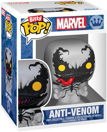 The world of POP! is getting bigger—and smaller—with Bitty POP! collectibles! Expand your Marvel collection with this 4-pack featuring Bitty POP! Venom, Bitty POP! Anti-Venom, Bitty POP! She-Venom, and a chase Bitty POP! collectible. The possible chase Bitty POP! collectibles are Rare (1/3) Spider-Man – Stealth Suit, Rare (1/3) Spider-Man – Symbiote Suit, Hyper Rare (1/6) Peter Parker, and Hyper Rare (1/6) Spider-Man – Spotlight. Bitty POP! collectibles are packaged in hard acrylic cases with detachable bottom lids. The detachable bottom lids double as acrylic bases, to which the Bitty POP! collectibles are adhered. Sort and arrange your Bitty POP! collectibles with the included display case! Acrylic display cases are stackable and hold four Bitty POP! collectibles each. Vinyl figures are approximately 0.9 in (2.3 cm) tall. Four collectibles per single package purchase.