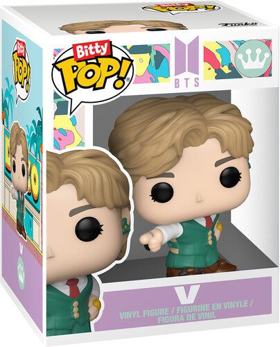 The world of POP! is getting bigger—and smaller—with Bitty POP! collectibles! Expand your BTS collection with Bitty POP! Stage “Dynamite” and V! Bitty POP! figure is packaged in a hard acrylic display case with a detachable bottom lid. The detachable bottom lid doubles as an acrylic base, to which the Bitty POP! figure is adhered. Remove Bitty POP! V from his display case so he can step onto the Bitty POP! Stage “Dynamite”! Vinyl figures are approximately 0.9 and 2 in (2.3 and 5.1 cm) tall.
