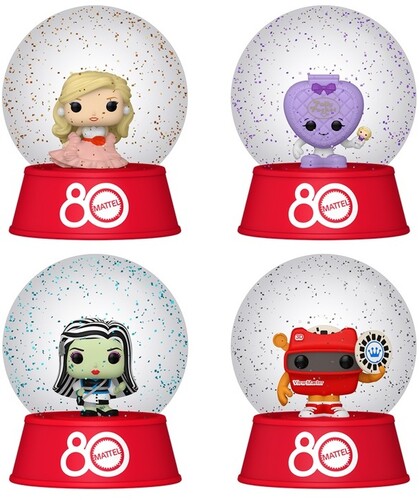 Shake up your collection with the Mattel® 80th Anniversary Mini Snow Globes! Each snow globe features one of your favourite retro toy favourites! There’s Frankie Stein™, Peaches ‘n Cream Barbie™, Polly Pocket™, and View-Master™. Collect them all! Globes are approximately 2.2 in (5.6 cm) tall. One collectible per single package purchase. Item selection is random. We cannot accept requests for specific items. You may receive duplicate figures. Warning: Choking Hazard. Collectibles are small. Not for children under the age of 3 years old.