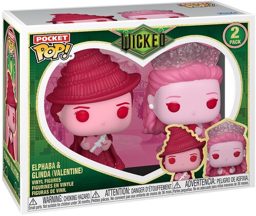Take love to new heights! Pocket Pop! Elphaba and Pocket Pop! Glinda™ have arrived with a stylish pink and red look for Valentine’s Day! Give these witches a place to land when you bring this 2-pack into your Wicked collection. Vinyl figures are approximately 2-inches tall.