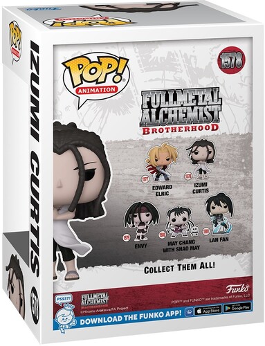 Train alongside the Elric brothers under the tutelage of Pop! Izumi Curtis! Complete your Fullmetal Alchemist: Brotherhood lineup when you welcome this master alchemist into your Anime collection. Vinyl figure is approximately 3.95-inches tall.