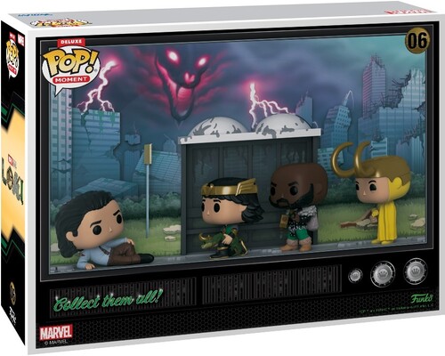 Loki’s plans took an unexpected turn when he stole the Tesseract. Bring the adventure home from Marvel’s Loki television series and into your collection with this Deluxe Pop! Moment of the Pop! Loki, Pop! Boastful Loki, Pop! Kid Loki, and Pop! Classic Loki in the Void! Pop! figures are adhered to backdrop to ensure scene integrity and ease of display. Approximate dimensions of protective case: 18”W x 13.25”H x 4.75”D