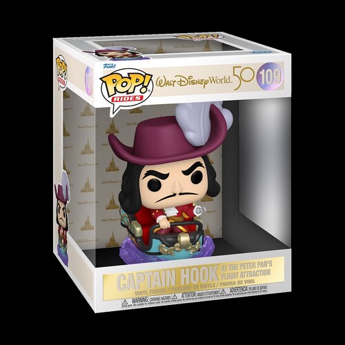 This Walt Disney World 50th Anniversary Captain Hook on Peter Pan's Flight Ride Pop! Vinyl Vehicle comes packaged in a window display box. Ages 3 and up.