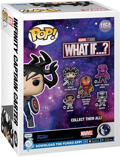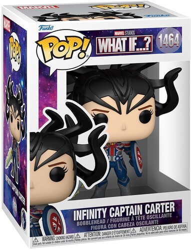 In the endless possibilities, venture to wonder and explore with Marvel Studios’ What If…? animated series. Collect Pop! Infinity Captain Carter to complete your What If…? set. Vinyl bobblehead is approximately 4.5-inches tall.