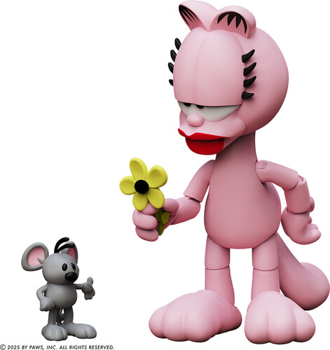 Garfield’s sassy girlfriend Arlene makes her debut as an action figure with 25 points of articulation, interchangeable expression, flower and Squeak the Mouse! Ready for a more or less successful date night with Garfield.