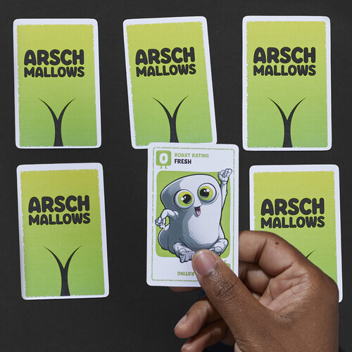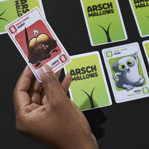 GERMANY’S FAVORITE MARSHMALLOW BUTT GAME: The Arschmallows game is a cheeky card game that combines light strategy, memory, and marshmallow butts. To win, be the player with the lowest points
