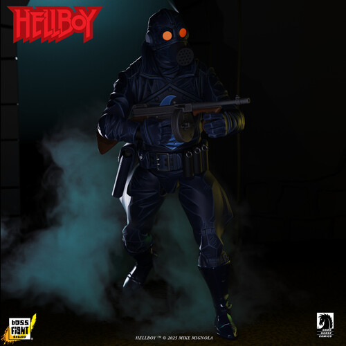 In the New York of 1937, the Lobster must stop both German Agents and a dangerous cult from gaining possession of a powerful invention. Lobster Johnson from “The Iron Prometheus” story has 24 points of articulation and includes alternate gas mask head, two pistols, holster, machine gun, Memnan Saa amulet and alternate hands. Figure is approx. 6.5” tall.