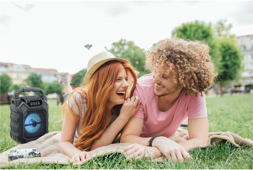Built to disperse sound, this easily transported miniature tailgate speaker will be your go-to for parties and tailgates alike. The mesmerizing LED light effects bring your parties to life and 6-hour battery life make this tailgate speaker a must-have.