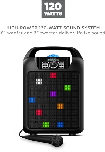 HIGH-POWER PORTABLE BLUETOOTH®️-ENABLED SPEAKER WITH 18 CUSTOMIZABLE PARTY THEME LIGHTS!