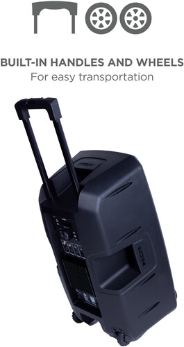 The Total PA™ Ultimate includes built-in microphone holders for the included mics so they are always available. The built-in handle and rugged wheels make transporting this powerhouse PA speaker a breeze for any occasion.