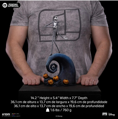 Inspired by one of the iconic posters of the movie, with a base brimming with scenic details evoking its unique atmosphere, such as Halloween pumpkins, crooked fences, and twisted structures, Iron Studios proudly presents "Jack Skellington - Nightmare Before Christmas Art Scale 1/10" inspired by the acclaimed animation produced and co-written by the legendary Tim Burton.