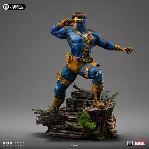 Positioned on a small base featuring technological elements embedded in the local vegetation, he raises his right arm toward his temple, prepared to open the ruby-quartz visor of his specialized glasses and unleash one of his powerful optic energy blasts. Dressed in a tactical variation of his iconic blue-and-yellow costume from the 1990s, with textured fabric and accessories attached to his belt and legs, the field leader is watched by a small nearly camouflaged lizard at his feet. A metallic container nearby bears his last name, marked on the front and back, seemingly holding mutant genetic material. For the first time in this scale by Iron Studios, the first student of Xavier’s School, leader, and founding member of the X-Men is brought to life with the “Cyclops - X-Men Comics - Legacy Replica 1/4” statue. Ready to join forces with Dr. Hank McCoy, better known as the Beast, the skilled Gambit, and other iconic mutants from Marvel Comics, with more X-Men releases to come.