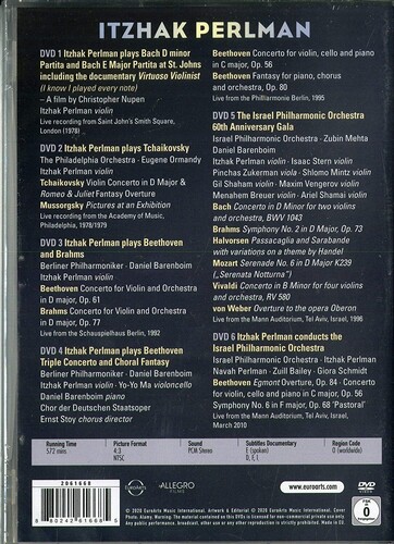 Itzhak Perlman is considered one of the most important violinists of the second half of the 20th century, he has been awarded 16 Grammy Awards and a Grammy Lifetime Achievement Award, as well as four Emmy Awards. This DVD box contains important landmarks of his career with the Berliner Philharmoniker and Israel Philharmonic Orchestra. The documentary is a closely-observed account of Itzhak Perlman's early life and career, an intimate look at the multi-faceted artist who holds his success and astonishing virtuosity with modesty.