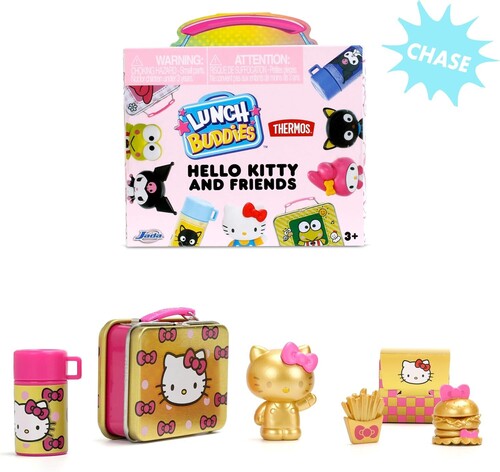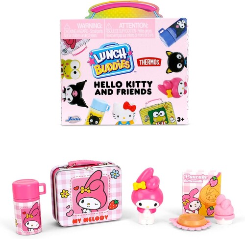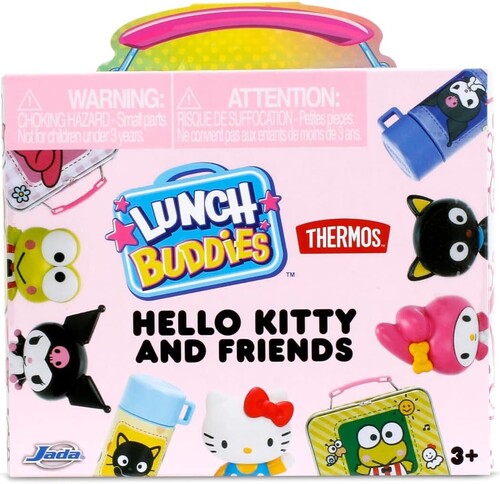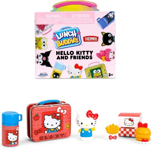 Celebrate your favorite Sanrio character in the cutest way with Jada Lunch Buddies! This 2-inch collectible tin lunch box is packed with personality—and surprises. Inside, you’ll find a Sanrio figure, themed thermos, and tiny food accessories like a PB&J sandwich and packaging, all inspired by Sanrio's playful world. Whether you're collecting them all, trading with friends, or showing off your favorite on a shelf or backpack, Lunch Buddies are made to be shared and displayed. With everything stored neatly inside the adorable tin, it’s the perfect pocket-sized collectible for fans of Hello Kitty & Friends. Start your Lunch Buddies collection today and bring a bite-sized boost of charm wherever you go!