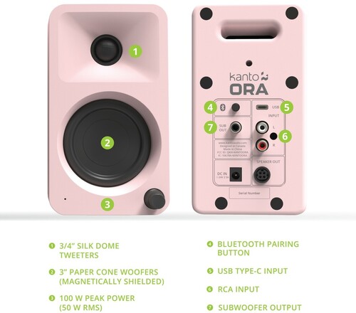 Kanto ORA MP Bluetooth Powered Reference Desktop Speakers - 100 Watts (Pink)