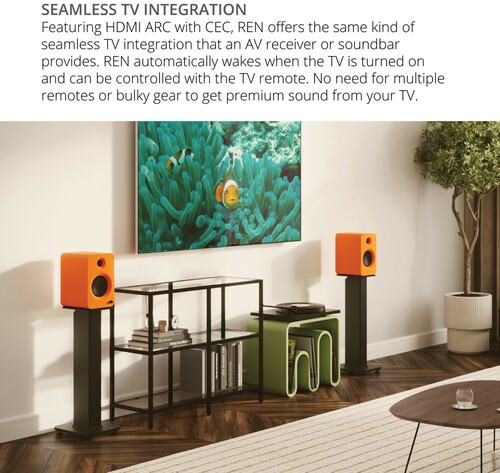 - SEAMLESS TV INTEGRATION - Equipped with HDMI ARC and CEC, REN integrates seamlessly with your TV, delivering superior sound quality without the necessity for a bulky receiver or multiple remotes. It also features auto-wake functionality and can be conveniently controlled via your TV remote.