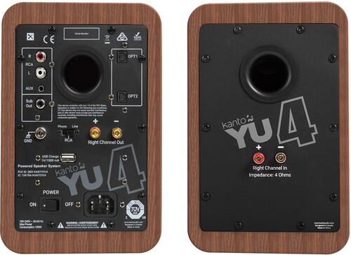 Kanto YU4WALNUT Bluetooth Powered Speakers - 140 Watts - Phono Preamp (Walnut)