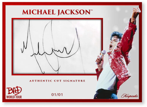 In addition, a randomly inserted 1 of 1 masterpiece card will feature an original cut Michael Jackson signature autograph purchased by Keepsake at auction, making it among the most rare and coveted collectible in music trading card history.