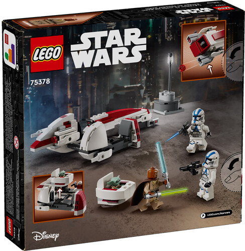 - LEGO® Star Wars™ BARC speeder with sidecar – Star Wars: The Mandalorian fans can recreate the daring BARC Speeder escape flashback scene from Season 3 with this building set