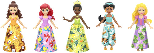 • Includes posable small dolls (3.5 inches) Ariel, Tiana, Belle, Jasmine and Rapunzel. Each doll wears a removable skirt or pants in a unique friendship print.