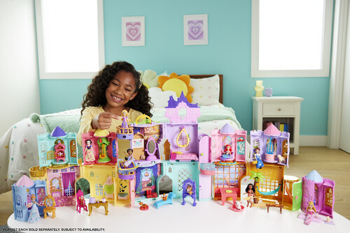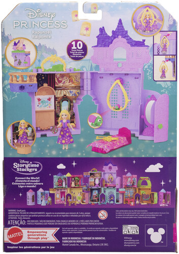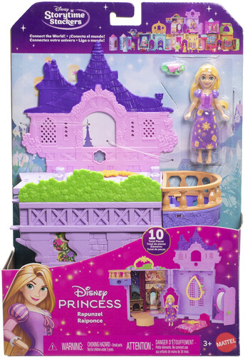 A doll house in charming small scale, the playset opens to reveal multiple play areas, plus a Rapunzel small doll (3.5 inches), 1 animal friend, furniture and more. Playset includes a handle for on-the-go play and can connect with other Storytime Stackers to expand the fun.