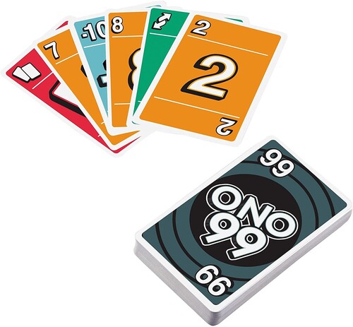 - The ONO 99™ card game is an exciting game with a discard pile that requires players to add up the running total and announce it with each discard, while staying under 99!