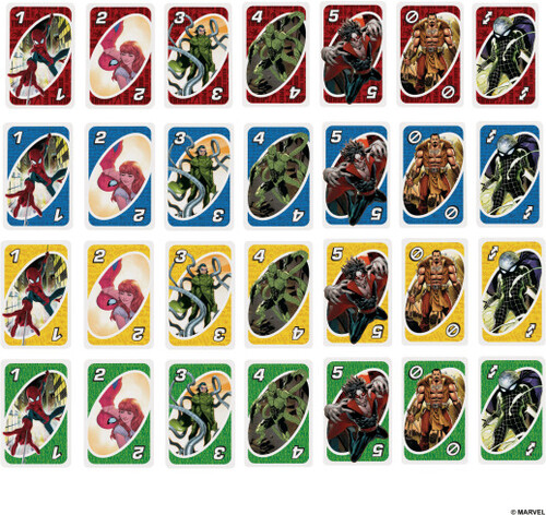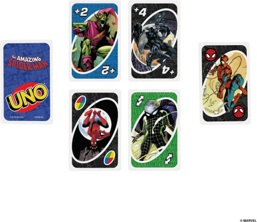 - UNO game players will love feature graphics inspired by characters from the Marvel Comic Book Series The Amazing Spider-Man.