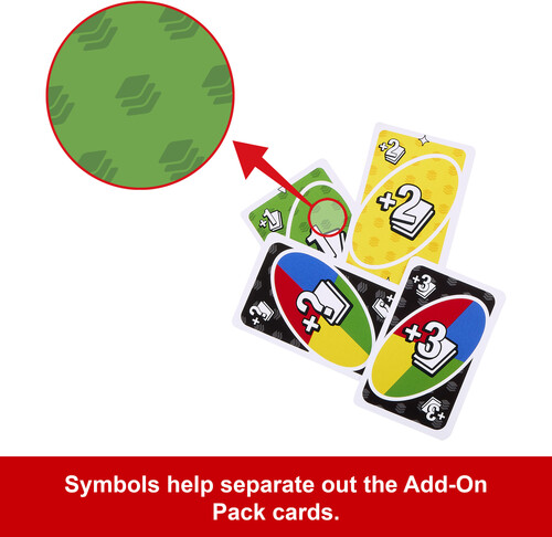 - Add UNO Add-On Packs to a classic deck of UNO cards to shake up the game; note: Classic UNO card game required!