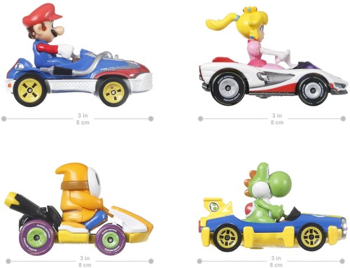 - Hot Wheels® partners with fan-favorite Mario Kart™ for a track-optimized die-cast 1:64 scale replica 4-pack!