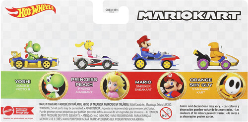 The 4-pack includes top favorite iconic Mario Kart™ characters. Kids can power-up their imagination by combining the thrill of Hot Wheels® performance with the action and racing of Mario Kart™.