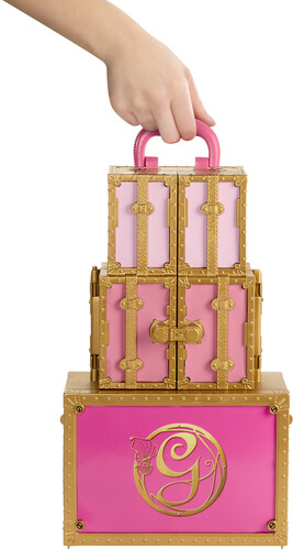 Just like in the film, this fold & go closet is made up of 3 connected trunks that open up & out to reveal 2 bewitching fashions & accessories for endless mixing & matching. With surprises like a mirror, doll stand and pop out clothes rack, kids can recreate moments from the magical movie.