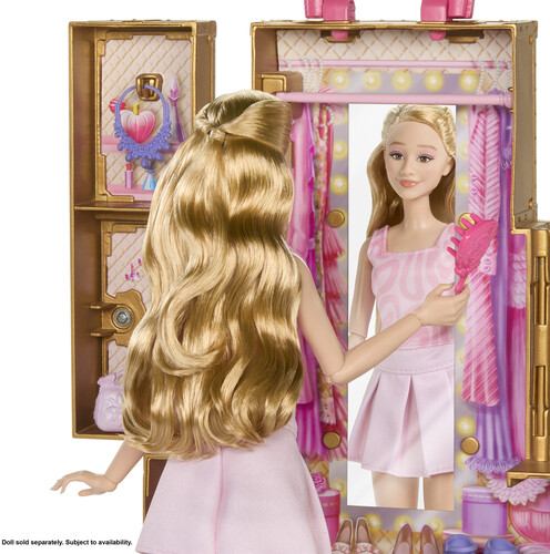 - Kids can relive their favorite moments from the movie with surprises like a pop out clothes rack, doll-sized full body mirror and doll stand so Glinda doll can stare at her gorgeous reflection.
