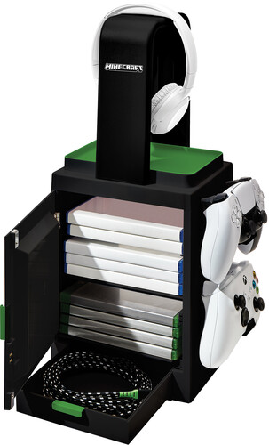 Designed with gamers in mind, it features dedicated mounts for your headphones and controller, an integrated tray for mobile devices, and storage for up to 10 Xbox One/Xbox Series X|S games or movies. With extra space to organize all your gaming essentials, this Minecraft Locker is a must-have for any fan.