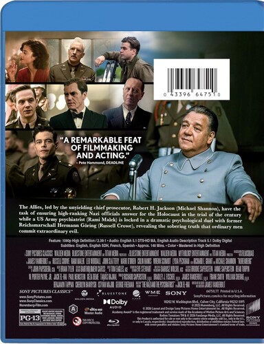 The Allies, led by the unyielding chief prosecutor, Robert H. Jackson (Michael Shannon), have the task of ensuring high ranking Nazi officials answer for the Holocaust in the trial of the century while a US Army psychiatrist (Rami Malek) is locked in a dramatic psychological duel with former Reichsmarschall Hermann Göring (Russell Crowe), revealing the sobering truth that ordinary men commit extraordinary evil.