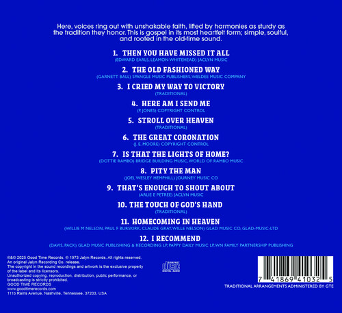 Jalyn Records is back! The Dayton, Ohio label from the creative mind of bluegrass legend Jack Lynch originally ran from the early '60s through the late '70s. Working out of his apartment on Brown Street, Lynch turned out a steady run of hard-driving bluegrass, country, and gospel sides cut by local pickers and big names alike, including Ralph Stanley and Don Reno. Decades on, these records are now lovingly remastered for modern ears and available on CD for the first time. Old-time gospel singing is certainly a speciality with the Earls and Whitehead Gospel Singers. This is their fifth album to date. Edward Earls, is playing five-string banjo and guitar, singing lead and bass. Millie Earls, sings lead and tenor. She is married to Edward Earls. Leamon Whitehead, sings lead and plays the guitar. Patty Whitehead, plays guitar and sings high tenor. She is Mrs. Leamon Whitehead. Mark Whitehead, age seven, plays mandolin and is featured on lead guitar on "The Touch Of God's Hand. " Mark is Leamon and Patty Whitehead's son. Joyce Browning, is singing alto. Mary Jane Browning, is playing the bass. She is fifteen and is Joyce Browning's daughter. Denzil Hunt, is featured on lead guitar. This album is dedicated to the families of Edward Earls and Leamon Whitehead, whose Kentucky roots run deep. With voices bound by kinship and faith, the group brings forward another heartfelt collection of old-time gospel.