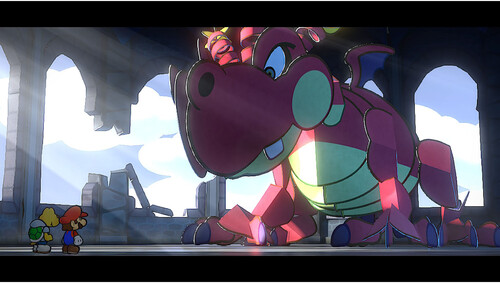 Join Mario on an epic paper-adventure to collect the Crystal Stars before the X-Nauts do! The nefarious X-Nauts are after the treasure behind the Thousand-Year Door! With a map from Princess Peach, and the help of a few locals, Mario journeys through a colorful world made of paper to find them first. To prevail in this quest, you'll have to level up Mario and his friends, master timing-based attacks and badges to impress the audience on the stage of combat, and make use of all the abilities that come with being cursed-er, conveniently made of paper-like folding into a plane to cross big gaps or turning sideways to slip through narrow openings. Leaf through a storybook world with charming characters in every fold Surprises abound in this deep and engaging tale, where everyone's got something to say and it's often not what you'd expect. Mario will meet all kinds of interesting folks on his journey, like the upbeat and studious Goombella and the shy but determined Koops. Some of these characters will need your help with their own quests, or even join your party. Others, like Peach and Bowser, have stories of their own that you'll play between Mario's chapters! A classic turns the page, bringing fresh visuals and updated features Twenty years after the original game on the Nintendo GameCube™ system, this version for the Nintendo Switch™ system has revamped graphics, and a suite of additional changes that make the game easier than ever to enjoy.