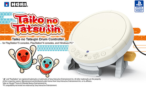Bring your Taiko fun to life with the Taiko no Tatsujin Drum Controller for the PlayStation®5, PlayStation®4 and Windows 11/10. This wired drum controller is specifically designed to enhance your Taiko no Tatsujin Rhythm Festival and Taiko no Tatsujin Drum Session! gaming experience. Includes two Taiko drumsticks featuring Taiko no Tatsujin themed design. Based on the popular arcade version, the drum controller is equipped with a pressure sensitive pad covering the face and rim of the drum that accurately detects the location of each of your taps. Built with convenient onboard buttons to navigate through the menu and select songs, or simply tap the rim and face of the drum with the included drumsticks to navigate in game. The stand provides a stable playing experience and includes storage space for the Taiko drumsticks. Officially Licensed by Sony & Bandai Namco. (Required Taiko no Tatsujin Rhythm Festival and/or Taiko no Tatsujin Drum Session! [for PlayStation4] game software sold separately.) Not compatible with The Drum Master!.