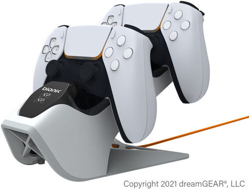 Dual charge and display dock for up to two DUALSENSE® wireless controllers.